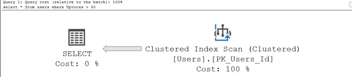 - SQL Server sẽ cần thực hiện quét toàn bộ dữ liệu trên Clustered Index PK_Users_Id của bảng Users.